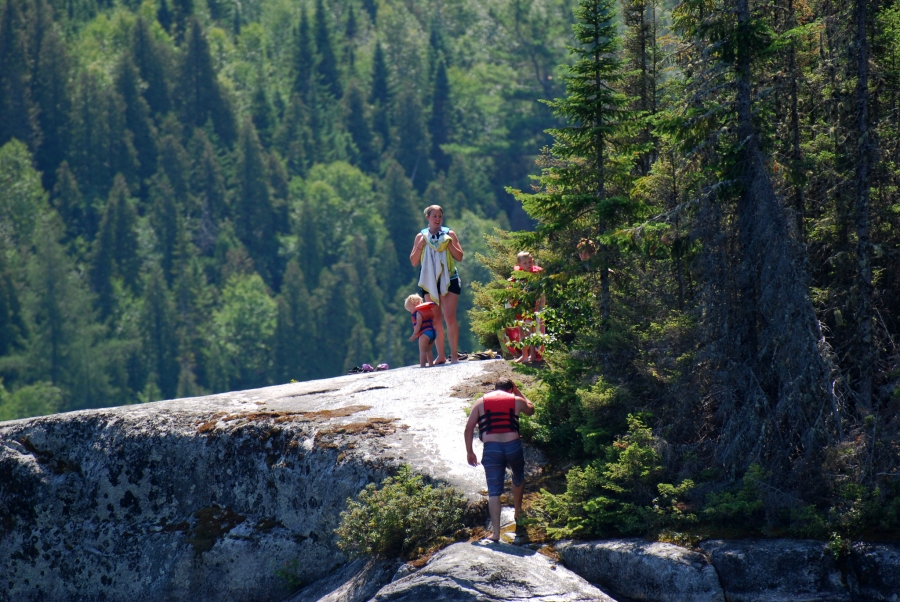 île pour la baignade, cap de roche pour sauter à l'eau.