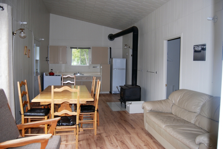 Le chalet Alain possède 3 chambres et 2 frigos. Il peut loger 9 personnes ou 3 couples: 3 chambres avec 3 lits simples ou 1 lit king et 1 lit simple. Il est placé en retrait et convient très bien au groupe de 7 à 9 personnes, à 3 couples ou à 2 familles. Les enfants aiment la cabane dans l'arbre et les parents, la plate-forme qui leur permet d'avoir une vue directe sur le lac.