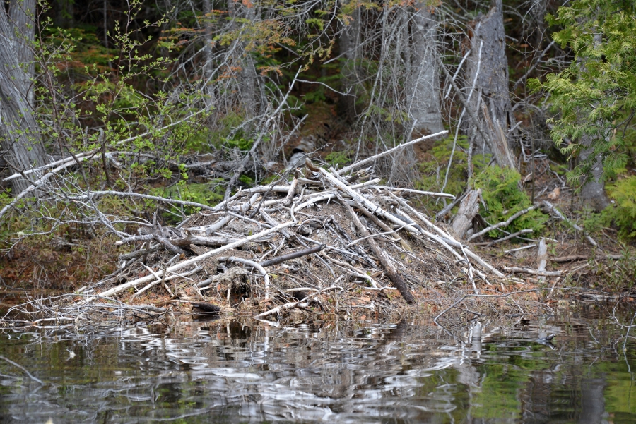 abri de castors, méandre qui mène à un barrage, escarpements,