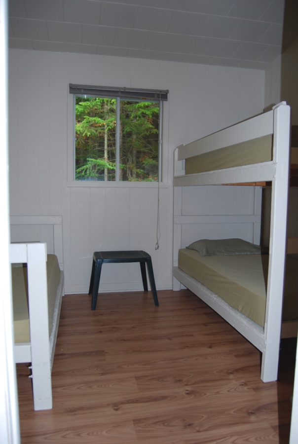 Le chalet Alain possède 3 chambres et 2 frigos. Il peut loger 9 personnes ou 3 couples: 3 chambres avec 3 lits simples ou 1 lit king et 1 lit simple. Il est placé en retrait et convient très bien au groupe de 7 à 9 personnes, à 3 couples ou à 2 familles. Les enfants aiment la cabane dans l'arbre et les parents, la plate-forme qui leur permet d'avoir une vue directe sur le lac.