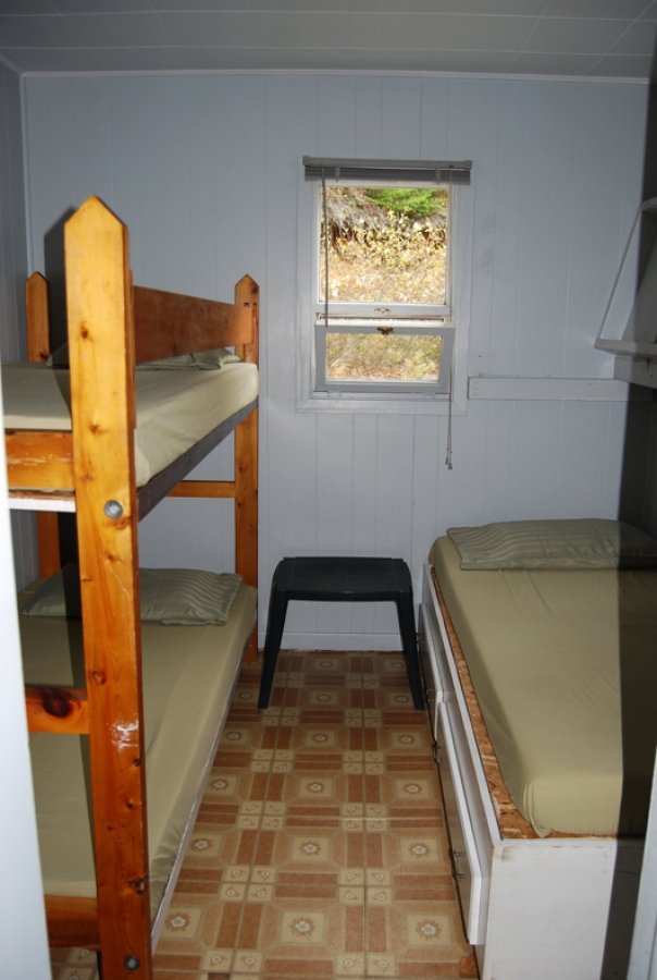 Le chalet Thérèse possède 4 chambres, 2 poêles à bois et 2 frigos. Il peut loger 12 personnes: 1 lit superposé et 1 lit simple dans chaque chambre. Ce chalet a une grande salle à dîner (30 places) avec une vue impressionnante sur la baie. Il est apprécié par les grands groupes et par les familles qui désirent avoir un lieu pour se réunir même si elles ne logent pas tous dans le chalet Thérèse.